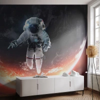 Fotomurali Premium Sand - Un astronauta alla deriva nello spazio sopra un pianeta - 100x70cm - Posso restare ancora un po'? - Decorazione murale moderna per soggiorno e camera da letto ARTTOR