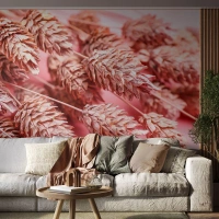Fotomurali Premium Sand - Primo piano di pannocchie rosa su sfondo pastello - 100x70cm - Cascata di fiori in rosa - Decorazione murale moderna per soggiorno e camera da letto ARTTOR