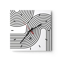 Orologio da parete - Orologio in Vetro - Un dipinto astratto con linee nere che creano motivi geometrici su uno sfondo bianco. - 30x30cm - In curva - Decorazione murale moderna per soggiorno e camera da letto ARTTOR