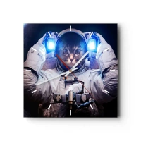 Orologio da parete - Orologio in Vetro - Un gatto in tuta da astronauta con la Terra sullo sfondo e una luce intensa. - 30x30cm - Houston, avete un problema - Decorazione murale moderna per soggiorno e camera da letto ARTTOR