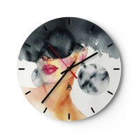 Orologio da parete - Orologio in Vetro - Ritratto di donna con occhiali e grandi orecchini, acquerello - 30x30cm - Il segreto dell'eleganza - Decorazione murale moderna per soggiorno, cucina e camera da letto ARTTOR