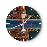 Orologio da parete - Orologio in Vetro - Vista aerea di un ponte di corda sopra un fiume in uno scenario autunnale - 30x30cm - Oltre il fiume, oltre il bosco - Decorazione murale moderna per soggiorno, cucina e camera da letto ARTTOR