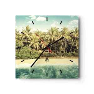 Orologio da parete - Orologio in Vetro - Spiaggia tropicale con palme e mare turchese - 30x30cm - Forse qui? - Decorazione murale moderna per soggiorno e camera da letto ARTTOR