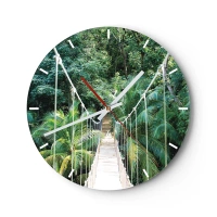 Orologio da parete - Orologio in Vetro - Un ponte sospeso nella giungla tropicale - 30x30cm - Welcome to the jungle! - Decorazione murale moderna per soggiorno, cucina e camera da letto ARTTOR