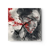 Orologio da parete - Orologio in Vetro - Ritratto artistico di una donna con accenti rossi astratti - 30x30cm - Nei vapori dell'assurdo - Decorazione murale moderna per soggiorno e camera da letto ARTTOR