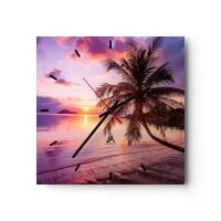 Orologio da parete - Orologio in Vetro - Spiaggia tropicale con palme al tramonto - 30x30cm - Beatitudine a perdita d'occhio - Decorazione murale moderna per soggiorno e camera da letto ARTTOR