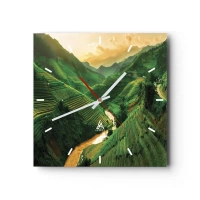 Orologio da parete - Orologio in Vetro - Pittoresche terrazze di riso in una valle verde illuminata dal sole al tramonto - 30x30cm - Valle del Vietnam - Decorazione murale moderna per soggiorno e camera da letto ARTTOR