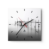 Orologio da parete - Orologio in Vetro - Un molo bianco e nero immerso in un paesaggio nebbioso - 30x30cm - E se la luce non c'è? - Decorazione murale moderna per soggiorno e camera da letto ARTTOR