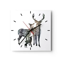 Orologio da parete - Orologio in Vetro - Paesaggio forestale nelle sagome dei cervi - 30x30cm - Foto di famiglia - Decorazione murale moderna per soggiorno e camera da letto ARTTOR