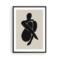 Poster in cornice nera - Figura astratta in posa con le braccia avvolte attorno al corpo, illustrazione in bianco e nero - 50x70cm - Nelle proprie braccia - Decorazione murale moderna per soggiorno e camera da letto ARTTOR