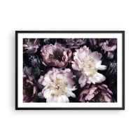 Poster in cornice nera - Fiori di vari colori su sfondo nero - 70x50cm - Dal giardino inglese - Decorazione murale moderna per soggiorno e camera da letto ARTTOR