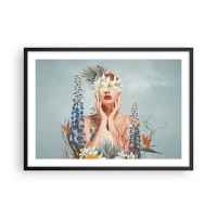 Poster in cornice nera - Ritratto di una donna con fiori in stile artistico su sfondo scuro - 70x50cm - La favola della principessa con i gigli - Decorazione murale moderna per soggiorno e camera da letto ARTTOR
