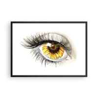 Poster in cornice nera - Occhio artistico con iride a forma di girasole - 70x50cm - Uno sguardo caldo come l'estate - Decorazione murale moderna per soggiorno e camera da letto ARTTOR
