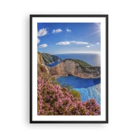Poster in cornice nera - Baia di Navagio sull'isola di Zante con scogliere e mare - 50x70cm - Le mie grosse vacanze greche - Decorazione murale moderna per soggiorno e camera da letto ARTTOR