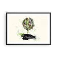 Poster in cornice nera - Carciofo acquerello con testo su sfondo chiaro con accenti verdi - 70x50cm - Evviva la verdura! - Decorazione murale moderna per soggiorno e camera da letto ARTTOR