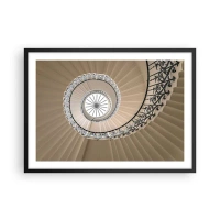 Poster in cornice nera - Scala a chiocciola con elegante approccio geometrico - 70x50cm - Al centro della chiocciola - Decorazione murale moderna per soggiorno e camera da letto ARTTOR