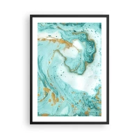 Poster in cornice nera - Una composizione astratta con accenti turchesi e dorati. - 70x50cm - Panta rei - Decorazione murale moderna per soggiorno e camera da letto ARTTOR