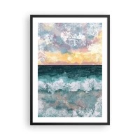 Poster in cornice nera - Onde del mare e tramonto in stile acquerello - 50x70cm - Acqua, luce, aria - Decorazione murale moderna per soggiorno e camera da letto ARTTOR