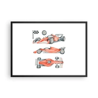 Poster in cornice nera - Un'auto da corsa rossa con una bandiera a scacchi - 70x50cm - Inseguendo i sogni - Decorazione murale moderna per soggiorno e camera da letto ARTTOR