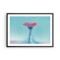 Poster in cornice nera - Un fiore rosa e blu in una composizione artistica su uno sfondo pastello - 70x50cm - L'abbraccio che ravviva - Decorazione murale moderna per soggiorno e camera da letto ARTTOR