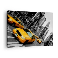 Quadro su tela - Stampe su Tela - Taxi gialli in un incrocio cittadino trafficato - 70x50cm - Gocce di sole a New York - Decorazione murale moderna per soggiorno e camera da letto ARTTOR