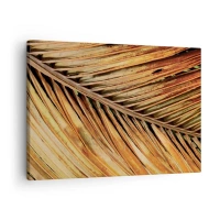 Quadro su tela - Stampe su Tela - Primo piano di una foglia di palma secca in toni caldi - 70x50cm - Oro di cocco - Decorazione murale moderna per soggiorno e camera da letto ARTTOR