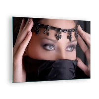 Quadro su vetro - Un volto di donna con una tiara ornata e uno sguardo intenso - 70x50cm - Misteriosa tentatrice d'oriente - Decorazione murale moderna per soggiorno e camera da letto ARTTOR