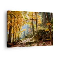 Quadro su tela - Stampe su Tela - Una foresta autunnale piena di foglie dorate e luce solare - 70x50cm - Il tempo del riposo - Decorazione murale moderna per soggiorno e camera da letto ARTTOR