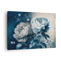 Quadro su tela - Stampe su Tela - Peonie blu su uno sfondo tenue con un motivo delicato - 70x50cm - Coppia perfetta - Decorazione murale moderna per soggiorno e camera da letto ARTTOR