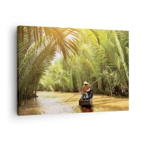 Quadro su tela - Stampe su Tela - Una barca su un fiume circondata da vegetazione tropicale - 70x50cm - Tunnel di palme - Decorazione murale moderna per soggiorno e camera da letto ARTTOR
