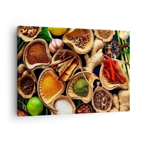 Quadro su tela - Stampe su Tela - Scatola di legno con varie spezie in scomparti - 70x50cm - Ordine delle forme, bouquet degli aromi - Decorazione murale moderna per soggiorno e camera da letto ARTTOR