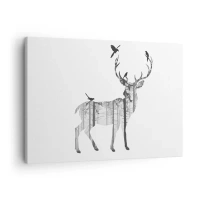 Quadro su tela - Stampe su Tela - Silhouette di un cervo con foresta e uccelli - 70x50cm - Lo spirito buono del bosco - Decorazione murale moderna per soggiorno e camera da letto ARTTOR
