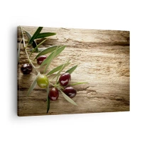 Quadro su tela - Stampe su Tela - Ramo d'ulivo con frutta su uno sfondo di legno invecchiato - 70x50cm - Direttamente dalla natura - Decorazione murale moderna per soggiorno e camera da letto ARTTOR