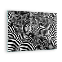Quadro su vetro - Una mandria di zebre in bianco e nero - 70x50cm - Ritratto collettivo a strisce - Decorazione murale moderna per soggiorno e camera da letto ARTTOR