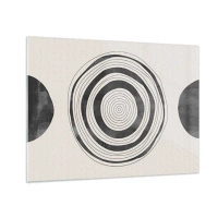 Quadro su vetro - Motivo astratto in bianco e nero con cerchi concentrici - 70x50cm - Conta ciò che sta in mezzo - Decorazione murale moderna per soggiorno e camera da letto ARTTOR
