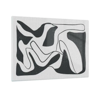 Quadro su vetro - Forme astratte in bianco e nero che ricordano un labirinto - 70x50cm - Gioco astratto nel labirinto - Decorazione murale moderna per soggiorno e camera da letto ARTTOR