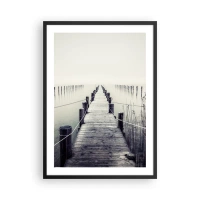 Poster in cornice nera - Un ponte di legno che conduce a una distesa d'acqua nebbiosa - 50x70cm - Immergiti nella pace - Decorazione murale moderna per soggiorno e camera da letto ARTTOR