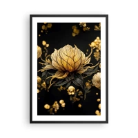 Poster in cornice nera - Un fiore dorato su sfondo nero in una composizione elegante - 50x70cm - Delicata fragilità - Decorazione murale moderna per soggiorno e camera da letto ARTTOR