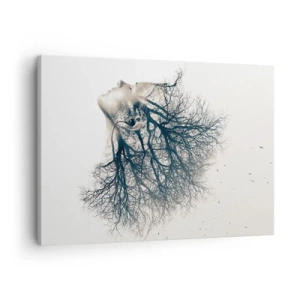 Quadro su tela - Stampe su Tela - Silhouette di una donna con un motivo di ramo e uccello sullo sfondo - 70x50cm - Lo spirito della foresta - Decorazione murale moderna per soggiorno e camera da letto ARTTOR