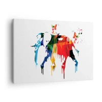 Quadro su tela - Stampe su Tela - Elefante colorato con farfalle in uno stile geometrico moderno - 70x50cm - Ognuno può ballare - Decorazione murale moderna per soggiorno e camera da letto ARTTOR