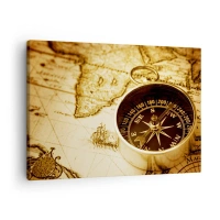Quadro su tela - Stampe su Tela - Una bussola antica sullo sfondo di una vecchia mappa del mondo - 70x50cm - A est o a ovest? - Decorazione murale moderna per soggiorno e camera da letto ARTTOR