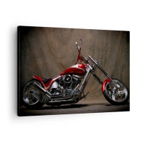 Quadro su tela - Stampe su Tela - Motocicletta personalizzata rossa su sfondo in tessuto marrone - 70x50cm - Bellezza in rosso e argento - Decorazione murale moderna per soggiorno e camera da letto ARTTOR