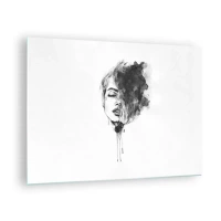 Quadro su vetro - Ritratto in bianco e nero di una donna con un'ombra astratta - 70x50cm - Cosa sogna la ragazza - Decorazione murale moderna per soggiorno e camera da letto ARTTOR