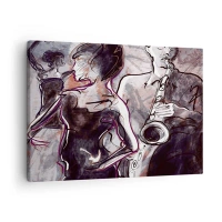 Quadro su tela - Stampe su Tela - Scena jazz astratta con un sassofonista e una donna che balla. - 70x50cm - Sciogliersi nella musica - Decorazione murale moderna per soggiorno e camera da letto ARTTOR