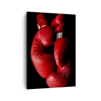 Quadro su tela - Stampe su Tela - Guantoni da boxe rossi su sfondo nero - 50x70cm - Dopo le emozioni del combattimento - Decorazione murale moderna per soggiorno e camera da letto ARTTOR