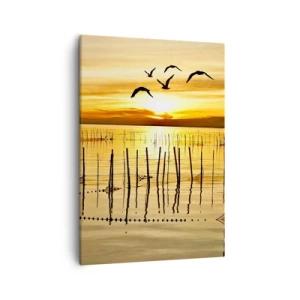 Quadro su tela - Stampe su Tela - Tramonto sull'acqua con uccelli in volo - 50x70cm - Alla pesca - Decorazione murale moderna per soggiorno e camera da letto ARTTOR