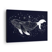 Quadro su tela - Stampe su Tela - Illustrazione grafica di una balena in stile spaziale. - 70x50cm - Nell'oceano dell'universo - Decorazione murale moderna per soggiorno e camera da letto ARTTOR