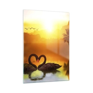 Quadro su vetro - Cigni neri sul lago al tramonto - 50x70cm - Tutto in coppia - Decorazione murale moderna per soggiorno e camera da letto ARTTOR