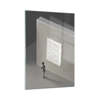 Quadro su vetro - Bambino in un labirinto con un simbolo di indovinello - 50x70cm - Ma dove mi trovo? - Decorazione murale moderna per soggiorno e camera da letto ARTTOR