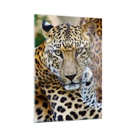 Quadro su vetro - Un leopardo selvatico che riposa tra il verde - 50x70cm - Selvaggio e tranquillo - Decorazione murale moderna per soggiorno e camera da letto ARTTOR